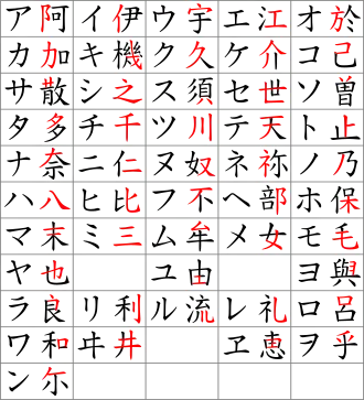 - ↑ 「いろは と アイウエオ」. ( vom 27. Mai 2012 im Webarchiv archive.today) In: members.jcom.home.ne.jp, abgerufen am 15. September 2020 (japanisch).