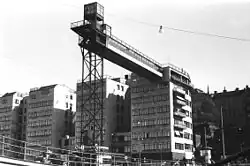 Unter der Verbindungsbrücke zwischen Aufzug und Bürogebäude befindet sich ein populäres Restaurant mit dem Namen Gondolen („die Gondel“).