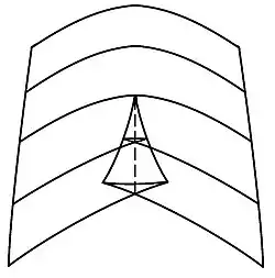 Hier ist der Raum der Kontrollparameter dreidimensional. Die Bifurkationsmenge besteht aus drei Flächen von Faltungskatastrophen, die sich in zwei Cusp-Bifurkationen treffen. Diese wiederum treffen sich in einem einzigen Schwalbenschwanz-Bifurkationspunkt.