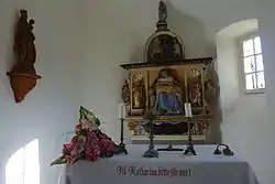 Im Chor der Kapelle befindet sich ein Zelebrationsaltar mit einem Antependium, einem auf Leinwand gemalten Ölbild, das wohl die hl. Katharina von Alexandrien zusammen mit einer weiteren Heiligen darstellt. Der Altar mit einer Pietà aus der zweiten Hälfte des 15. Jahrhunderts besitzt eine Skulptur der hl. Katharina, die typischerweise mit einem Rad gezeigt wird. Eine weitere Skulptur der hl. Katharina befindet sich im Kirchenraum.