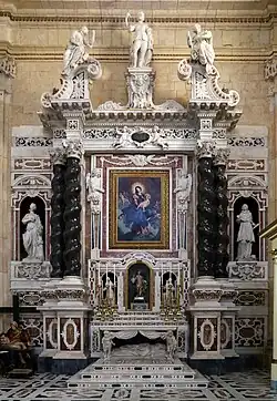 Auf dem Marmoraltar zwischen zwei gedrehten Säulenpaaren befindet sich eine Skulptur des Heiligen Michael, der die abtrünnigen Engel vertreibt, ein Werk von Giuseppe Maria Mazzetti aus dem 18. Jahrhundert. An den Seiten befinden sich zwei Statuen, die den Evangelisten Johannes und den Propheten Jesaia darstellen. Es wurde 1939 restauriert.