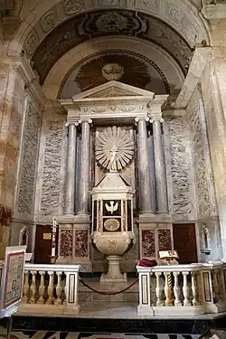 Im Jahr 1618 wurden die Arbeiten abgeschlossen, und Erzbischof Francisco Desquivel ließ das Presbyterium errichten, um den Schrein der Märtyrer zu bauen.[2] Am 22. November 1669 (dem Festtag der Heiligen Cäcilia) veranlasste ein anderer Bischof, Pietro Vico, den Umbau des Innenraums und der Fassade im Barockstil und beauftragte Domenico Spotorno mit der Leitung der Arbeiten.[3]