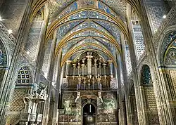 Die Orgel wurde zwischen 1734 und 1736 von Christophe Moucherel mit 43 Registern auf vier Manualen erbaut und verfügt heute über 55 Register auf 5 Manualen und Pedal. Besonders bekannt ist ihr Prospekt, mit 9 Rundtürmen der größte barocke Prospekt weltweit.[7] Das Instrument wurde mehrfach umgebaut und erweitert, 1747 durch François Lépine, 1779 durch Jean-Esprit Isnard und 1904 durch Jean-Baptiste Puget.[8] Gleichwohl gilt das Instrument als eine der größten und bedeutendsten französischen Barockorgeln. Dank einer vorbildlichen Restaurierung durch Bartoloméo Formentelli konnte in den Jahren 1977 bis 1981 ihr ursprünglicher Klangcharakter weitgehend wiederhergestellt werden.[9] Mary Prat-Molinier bekleidete von 1968 bis 2011 das Amt der Titularorganistin. 1995 kam Pierre Jean Schoen als co-titulaire hinzu und wurde 2011 als titulair berufen.[10] Seit Ende des Jahres 2014 ist Frédéric Deschamps Titularorganist der Kathedrale sowie der Stiftskirche Saint-Salvi.[11]
