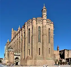 Die Kathedrale wurde im Stil der Gotik errichtet, jedoch nicht wie die meisten gotischen Kathedralen in Naturstein, sondern als Backsteinbau. Darin ist sie das wohl prominenteste Beispiel des Gothique toulousien, der südfranzösischen Backsteingotik.