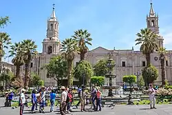 Die Kathedrale von Arequipa oder Kathedralbasilika Santa Maria (spanisch Basilika Catédral di Santa María) ist eine römisch-katholische Kirche in Arequipa im Süden von Peru. Die Marien-Kathedrale des Erzbistums Arequipa trägt den Titel einer Basilica minor.[1] Die Kirche, die die gesamte Nordseite der Plaza de Armas einnimmt,[2] ist ein zentrales Bauwerk des UNESCO-Welterbes Historisches Stadtzentrum von Arequipa.[3]