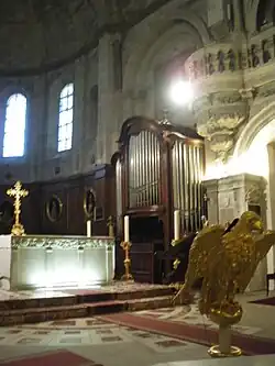 Die Orgel wurde 1818 vom Mailänder Orgelbauer Lodovico Piantanida als „Italienisches Instrument“ erbaut. 1860 nahm der Orgelbauer Théodore Puget (Toulouse) einige Veränderungen vor. 1966 wurde das Instrument durch den Orgelbauer Alain Sals (Malaucène) in den Ursprungszustand zurückversetzt. Die letzte Restaurierung führte die italienische Orgelbaufirma Mascioni im Jahre 2004 aus. Das Instrument hat Register auf einem Manual, ohne eigenständiges Pedalwerk. Das angehängte Pedal wird durch Registerzüge aus dem Manualwerk bestimmt.[1]