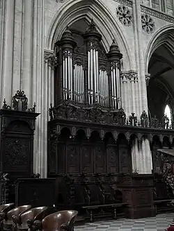 Die Geschichte der Hauptorgel reicht zurück in das 16. Jahrhundert. Das erste Instrument wurde 1562 von den Hugenotten zerstört, das zweite Instrument wurde 1597 mit 36 Registern auf vier Manualen und Pedal erbaut. Diese Orgel erwies sich 1838 als reparaturbedürftig. Nach mehreren Reparaturen und Veränderungen wurde das Instrument schließlich 1862 von dem Orgelbauer Cavaillé-Coll restauriert, der zuvor bereits eine Chororgel neu erbaut hatte. Die Orgel hat heute 43 Register auf drei Manualen und Pedal. Die Trakturen sind mechanisch.[1]