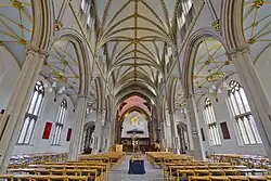 Die Fassade der Kathedrale ist nur eintürmig; der heute dreischiffige Bau verfügt über ein Querhaus und eine quadratische Vierung mit oktogonalem durchlichtetem Tambour. Während im Mittelschiff das neugotische steinerne Rippengewölbe erhalten ist, werden die beiden Seitenschiffe von hölzernen Flachdecken überspannt. Der Chorschluss ist – wie bei englischen Kirchen üblich – flach.