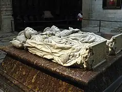 In der Kathedrale befindet sich auch das Grab des spanischen Nationalhelden El Cid und seiner Ehefrau Jimena. Auf der im Boden eingelassenen Grabplatte befindet sich folgende Inschrift: „Aquí yacen Rodrigo Díaz, el Campeador, muerto en Valencia en 1099, y su esposa Jimena, hija del conde Diego de Oviedo, de regia estirpe. A todos alcanza la honra del que en buena hora nació.“ [Hier ruhen Rodrigo Díaz, der Campeador, gestorben zu Valencia im Jahre 1099, und seine Gemahlin Jimena, Tochter des Grafen Diego von Oviedo, aus königlichem Geschlecht. Alle erreicht die Ehre dessen, der zur rechten Stunde geboren ward.]