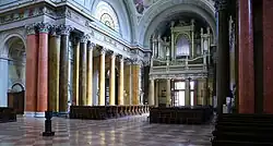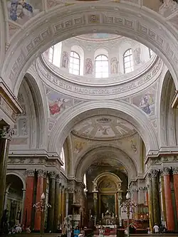 Im Innern beherrschen die dichten Marmorsäulenreihen, die freskengeschmückten Flachkuppeln über Langhaus und Chor und die helle Hauptkuppel den Raumeindruck. Klassizistische, in der Ikonografie an den Barock anknüpfende Formen prägen die künstlerische Ausstattung.
