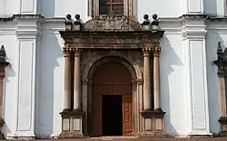 Die Fassade der Kirche besitzt drei Eingangstore. Die Kirche besaß ursprünglich zwei Kirchtürme, links und rechts der Fassade. Die rechte wurde in einem Sturm 1766 zerstört und seitdem nicht mehr wieder aufgebaut.[1] Das gesamte Gebäude wurde aus Laterit errichtet und später gekalkt. Lediglich einzelne Fassadenelemente, wie die Toren, die Fenster und die Ädikulä sind aus Granit geschaffen, der dafür extra aus Vasai (port. Baçaim) herangebracht wurde.