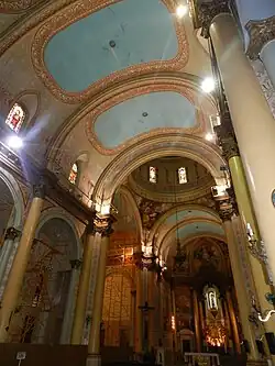 Die Kirche wurde von dem Architekten Juan B. Arnaldi entworfen und mischt verschiedene historistische Stile. Teile dieses Eklektizismus bilden der neobyzantinische Stil in der Fassade, die Neogotik der Glockentürme und die barock-italienische Proportion der Vierungskuppel über einem Tambour. Die farbenprächtige, einschiffige Kirche besitzt ein Querhaus und Seitenschiffe andeutende Kapellen. Die Tonnengewölbe werden durch Stichkappen beleuchtet.