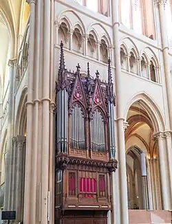 Die große Orgel auf der Westempore wurde 1851 von der Orgelbaufirma Daublaine et Callinet in einem neugotischen Gehäuse erbaut. Kurz nach der Fertigstellung wurde sie mehrfach restauriert, umgebaut und erweitert. Umfassend umgebaut wurde die Orgel in den Jahren 1935–1936 durch die Orgelbaufirma Merklin und Kuhn. Das Instrument war mit 56 Registern auf drei Manualen und Pedal ausgestattet.[4] Die große Orgel von Daublaine et Callinet wurde während der Renovierungsarbeiten abgebaut.