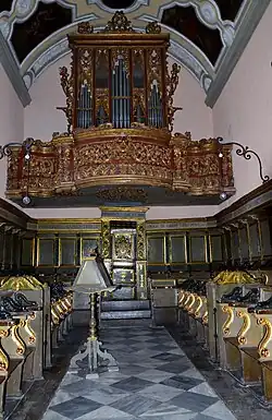 Vom rechten Seitenschiff gehen die Kapelle des hl. Gregor, das Baptisterium, die Herz-Jesu-Kapelle und die Sakristei ab. Hinter dem Altar stehen unter dem Tonnengewölbe das Chorgestühl und die Orgelempore. Entlang des linken Arms des Querschiffs befinden sich der Altar der byzantinischen Madonna, der Rosenaltar und der alte Altar der Kapelle, die der Muttergottes von Nazareth gewidmet war. Neben Tafeln für die Bischöfe Giuseppe Camassa und Domenico Petroni erinnert eine weitere an die Anerkennung der Kathedrale als Basilika minor durch Papst Pius XII. im Jahr 1958.[1]