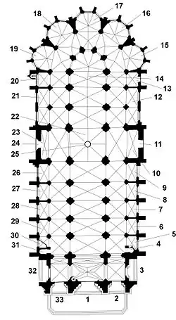- Lichte Weite des Langhauses insgesamt: 39 m