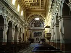 Die dreischiffige Basilika ist durch niedrige Bögen auf quadratischen Säulen gegliedert. Das Mittelschiff ist mit einer reich verzierten Kassettendecke mit eingebetteten Gemälden gestaltet. Oberhalb der Arkaden sind Medaillons mit den Bildnissen der Bischöfe angebracht. Zwischen den Obergadenfenstern sind Heilige und Märtyrer der Stadt abgebildet. Der Chor wurde Ende des 19. Jahrhunderts mit Fresken zum Martyrium des hl. Agapitus gestaltet. In der darunterliegenden Krypta sind Überreste der römischen Vorgängerbauten zu sehen. Die Seitenschiffe führen zu Kapellen, die linke ist der Madonna von Pompej gewidmet, die rechte stellt das Fegefeuer dar.