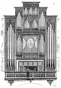 Die erste Orgel wurde wohl im 15. Jahrhundert errichtet. Das Instrument hatte 21 Register auf zwei Manualen und Pedal. Das Baudatum und der Erbauer sind unbekannt. Erhalten ist von diesem Instrument das imposante Orgelgehäuse, welches 19,75 m hoch und 8,8 m breit ist.