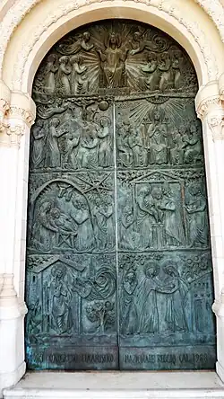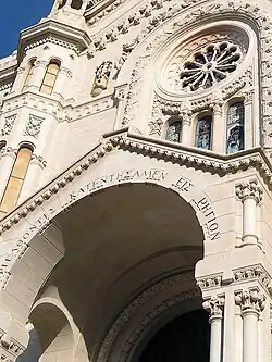 Die Hauptfassade wird gegliedert durch vier Türme. Auf der Freitreppe befinden sich links und rechts des Portals die Statuen des Heiligen Paulus und des Heiligen Stefans. Der Kirchenbau wurde 1928, der 28 m hohe Campanile 1931 fertiggestellt.