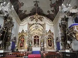 Die Kirche zeichnet sich durch eine prächtige Innenausstattung aus, die vom Barocco Joanino bis zum Rokoko reichen. Der Hauptaltar mit gewundenen Säulen ist mit reichverzierten Engelsfiguren versehen. Unter der Taube als Symbol des Heiligen Geistes steht die Statue der Schutzpatronin, eine großartige Darstellung der Jungfrau der Säule auf Wolken und Engeln. Sie wird von ausdrucksstarken Statuen und goldener Pracht eingerahmt. Sechs Seitenaltäre säumen das Kirchenschiff, vier an den Seiten und zwei neben dem Triumphbogen. Die Altäre sind mit raffinierten und dicht vergoldeten Holzschnitzereien, besonders floralen Motiven, auszeichnen, sowie einer Fülle von Engelsfiguren, die sich mit Arabesken und Girlanden, Kolonnetten und Voluten vermischen. Die Altäre folgen dem gleichen Grundmuster, weisen jedoch Unterschiede auf.[3]