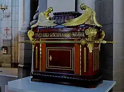 Unter den Ausstattungsgegenständen ist der aus Carrara-Marmor gefertigte Altar mit einer Darstellung des Lamm Gottes, flankiert von den heiligen Stephanus und Karl Borromäus, besonders hervorzuheben. Ungewöhnlich ist die im äußeren Seitenschiff aufgestellte Nachbildung einer von zwei Cherubim überhöhten Bundeslade.