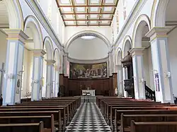 Bereits mit der Fertigstellung hatte die Kirche eine zweigeschossige Fassade, bekrönt von einem hölzernen Glockenturm. Der heutige Vorbau auf der Westseite bestand jedoch noch nicht. Im Inneren erhielt die Kirche ein flach gedecktes Schiff mit sechs auf Säulen ruhenden Bögen als Abgrenzung zu den Seitenschiffen. An den von einem Gewölbe überspannten Chor grenzt eine Apsis mit einem halbkreisförmigen Grundriss. Die Kirche ist 45 Meter lang, 33 Meter breit und 20 Meter hoch.