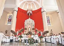 Außerdem stammen die Glocken aus Deutschland, die Buntglasfenster mit biblischen Figuren wurden in Mexiko hergestellt und der marmorne Hochaltar, der das Bild der Muttergottes des Friedens in der Apsis beherbergt, stammt aus Italien. Außerhalb des Tempels befinden sich zwei Marmorbüsten von Luis de Moscoso und Gerardo Barrios, während im oberen Teil der Fassade eine Statue von Christus König steht.