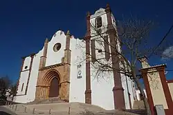 Der älteste Teil der Kirche ist der ganz aus exakt behauenen Natursteinen erbaute dreiapsidiale gotische Chor. Die späteren Anbauten – mit Ausnahme des hochgotischen Archivoltenportals und der Ecksteine des Glockenturms (torre siniera) – bestehen aus Bruchsteinen und wurden deshalb verputzt. Der durch Strebepfeiler stabilisierte Chor verfügt über einen Zinnenkranz und mehrere zweibahnige Maßwerkfenster – die ältesten im Süden der Iberischen Halbinsel.