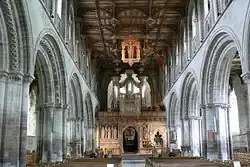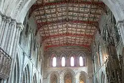Das dreischiffige Langhaus ist trotz der später eingefügten gotischen Fenster unverkennbar normannisch. Es hat sechs wuchtige Joche mit klaren Halbkreisbögen, die mit feinem Relief verziert sind. Die Pfeiler, die abwechselnd rund und achteckig gehalten sind, sind dagegen eher schmucklos mit schmalen, gekerbten Kapitellen. Sie sind so errichtet, dass sie dem Auge das Gefälle mittels perspektivischer Neigung ausgleichen. Das Schaustück des Langhauses ist die fein geschnitzte Holzdecke aus schwarzer irischer Eiche von 1500[2].