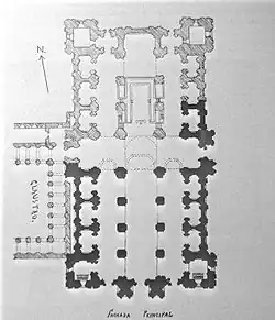 Das nahezu dunkle dreischiffige Innere der Kathedrale wird von mächtigen Pfeilern bestimmt, deren pilasterartige Vorlagen von Kapitellen bekrönt werden. Darüber erstreckt sich ein mächtiges Gesims, welches den Blick auf die Lünettenfenster beeinträchtigt. Die Seitenschiffe ermöglichen den Zugang zu den anschließenden Seitenkapellen. Hinter den – nachträglich hinzugefügten – Apsiden befinden sich Reste des geplanten Querhauses mit einem von vier Säulen gerahmten Portal. Die Choranlage wurde niemals ausgeführt.