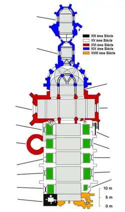 Aus dieser Zeit stammen das Längs- und das Querschiff sowie der Portalbau an der Nordseite. Dieser Portalbau enthält – entsprechend bretonischen Bräuchen – zwölf Nischen, um Statuen der zwölf Apostel aufzunehmen. Im 16. Jahrhundert wurde an der Nordfassade des Querschiffs in Höhe des fünften Jochs eine runde mehrstöckige Renaissance-Kapelle angefügt, die Chapelle du Saint-Sacrement. Die Gewölbe und der Chor wurden zwischen 1771 und 1774 errichtet. Der Südturm und die Westfassade schließlich stammen aus der Mitte des 19. Jahrhunderts.
