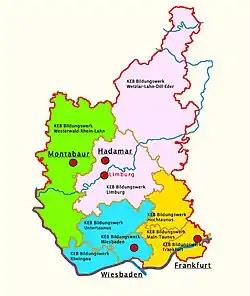 Die 9 Bezirksbildungswerke des Bistums Limburg mit Sitz in Frankfurt, Hadamar, Montabaur und Wiesbaden