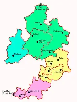Das Dekanat Waldeck[40] erstreckt sich aus Nordrhein-Westfalen über ein Teilgebiet des Landkreises Waldeck-Frankenberg.