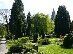 Blick über den Friedhof, im Hintergrund die Friedhofskirche
