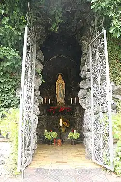 Im Jahre 1888 erhielt das Gebäude eine Lourdesgrotte. Die kapellenartige Andachtsstätte wurde aus aufgeschichteten Bruchsteinen errichtet.[2]