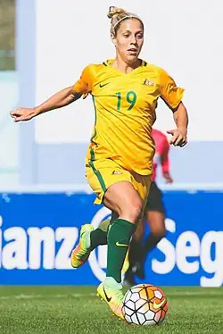 Eine Verletzung zu Ende des Jahres verhinderte ihre Teilnahme am Cup of Nations Ende Februar/Anfang März 2019. Am 5. April wurde sie dann bei der 3:5-Niederlage gegen die USA in der Schlussminute eingewechselt und am 14. Mai 2019 für die WM nominiert.[12][13] Sie wurde im ersten Spiel gegen Italien beim Stand von 1:1 in der 69. Minute eingewechselt und musste mit ihrer Mannschaft in der fünften Minute der Nachspielzeit das Tor zum 1:2-Endstand hinnehmen. Sie kam dann noch im letzten Gruppenspiel beim 4:1-Sieg gegen Jamaika zum Einsatz, wo sie die Vorlage zu einem der vier Tore von Sam Kerr lieferte. Im Achtelfinale, das im Elfmeterschießen gegen Ex-Weltmeister Norwegen verloren wurde, kam sie nicht zum Einsatz.