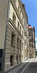 | 9 (alt) | 1631 gehörte das Haus Dr. Simon Wiprecht. In den Jahren 1652 und 1659 stand auf dem Grundstück eine Hütte, die von zwei Menschen bewohnt wurde. 1659 veräußerte Wiprecht die Stätte für 66 Taler an den Gastwirt Adam Gaudelitz. 1683 gehörte die Stätte mitsamt der Hütte Julius Österreich, dem auch das Nachbargrundstück Nummer 8 gehörte. 1689 erbte es Uhle, der die leere Fläche für 130 Taler an den Fleischer Noe Didier verkaufte. Von ihm erwarb 1701 das dann mit einem Haus bebaute Grundstück der Strumpfstricker Heinrich Schaub, der es 1700 (?) für 1000 Taler an den Strumpfstricker Elias Schieß verkaufte. | ||