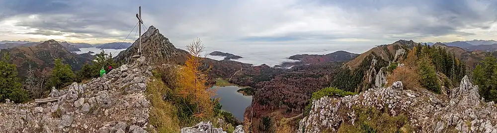 Blick auf Katzenstein mit Laudachsee im Vordergrund