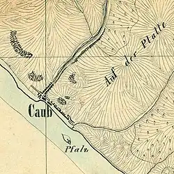 Ausschnitt der Topographischen Aufnahme der Rheinlande mit der Stadt Kaub (um 1819)