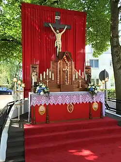 Bei der jährlichen Sakramentsprozession am Pfingstmontag wurde es vom Junggesellen-Verein, heute dem Bürgerverein Kaule, und Bewohnern der Kaule entsprechend ausgestattet und geschmückt,[1] so wie heute noch bei der Bensberger Fronleichnamsprozession, die alle zwei Jahre auch zum Kauler Kreuz führt, wo sich einer der Segensaltäre befindet. Dafür wird jeweils der in den 1920er-Jahren im Winfriedheim[6] gebaute Altar aufgebaut.