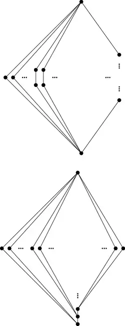 Eine Kette ist eine Sequenz (endliche Folge) von Elementen , sodass für . Die Länge einer Kette ist die Anzahl der Mitglieder . Wenn jedes in der Kette ein Link ist, dann heißt die Kette ein Pfad (en. path).