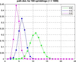Diese Schätzgrößen sollten die korrekte Dimension für Kausalmengen ergeben, die durch Sprinkling mit hoher Dichte in einer -dimensionalen Minkowski-Raumzeit erzeugt werden. Tests in konform ebenen Raumzeiten haben gezeigt, dass diese beiden Methoden genau sind.[14]
