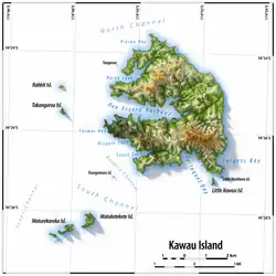 Die Insel liegt 50 km nördlich von Auckland und 1400 Meter vor der Küste der Northland Peninsula, speziell Tawharanui Peninsula und schützt die Kawau Bay im Nordosten von Warkworth. Sie ist 8 km lang, 5 km breit und hat eine Fläche von 2,05 km².[1] Sie wird durch den Bon Accord Harbour, geologisch gesehen ein versunkenes Tal, nahezu zweigeteilt. Zwei kleinere solcher Täler, North Cove und South Cove schneiden sich nördlich und südlich davon von der Westseite in die Insel ein. Vom Festland der nördlich gelegenen Tawharanui Peninsula ist die Insel 1475 m entfernt.