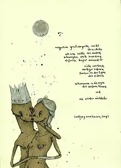 In seinen Zeichnungen und Illustrationen haben skurrile Wesen ihren Auftritt, diese bewegen sich in sonderbaren Räumen, Welten und Szenarien, die jenseits des Hier und Jetzt erscheinen und sie sind auch Anlass sich mit seinen Gestalten in anderen Welten zu begeben und sich dort zu bewegen – es sind Orte, in denen Geschichte aber auch Geschichten fabuliert werden. Texte sind dem Künstler immer Inspirationen für seine Arbeiten.