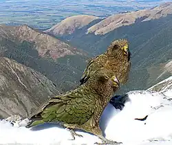 Der Kea gehört zu den wenigen Papageienarten, die außerhalb der Tropen leben und auch in verschneiten Regionen überwintern können, doch in den Wintermonaten, wenn in den Bergen die Nahrung knapp wird, treibt es die Vögel mitunter auch ins Flachland.