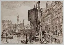 - In 2 Jahren von 1878 bis 1880 wurde der Niederbaum durch eine eiserne Drehbrücke zwischen dem Baumwall und der Kehrwiederspitze ersetzt. Diese Brücke diente als wichtige Verkehrsverbindung von den damals modernen Kaianlagen am Sandtorhafen und Grasbrookhafen zur Innenstadt.