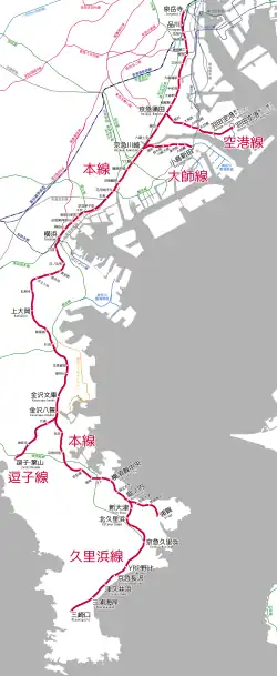 Die Keikyū betreibt ein 87,0 Kilometer langes Eisenbahnnetz im Südwesten des Großraums Tokio. Es besteht aus fünf Linien: