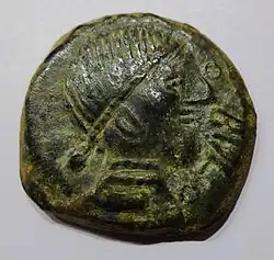 Keltische Stämme, die im 9. Jahrhundert vor Christus nach Spanien eingewandert waren, lebten ab ca. 200 v. Chr. in den römischen Provinzen Hispania citerior und Hispania ulterior. Seitdem begannen dort auch eigene Münzprägungen der Städte, die häufig von griechischen und römischen Vorbildern beeinflusst waren.[4] Die im nördlichen Spanien geprägten Keltenmünzen orientierten sich deshalb in den Nominalen (vor allem Denare und Asse) und in der Gestaltung stark an den Vorbildern der Römischen Republik und der frühen Kaiserzeit. Auch wenn die Silberdenare mit einem bärtigen Männerkopf auf der Portraitseite nur grob dem behelmten Romakopf der Republikdenare gleichen, ist der auf der Rückseite gezeigte Reiter mit eingelegter Lanze den ebenso dargestellten Dioskuren der Republikdenare sehr ähnlich. Auch die Asse aus Bronze gleichen mit der Gestaltung des Porträts und der lateinischen Beschriftung den römischen Vorbildern. Das gilt insbesondere für Münzen, die in Städten mit dem Status municipium (z. B. Gades) geprägt wurden und das Porträt des Augustus oder später des Tiberius trugen.