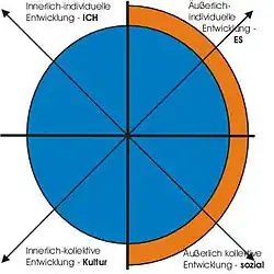 - ↑ Nebeneinanderstellungen in Integrale Vision, S. 112 f, ausführlich in Integrale Psychologie, S. 221 ff