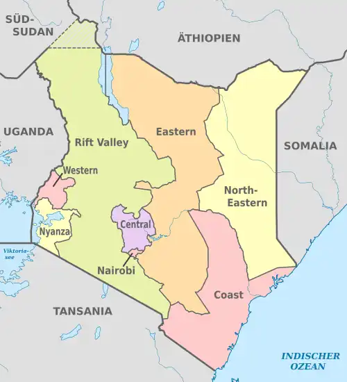 - ↑ Kenia: Verwaltungsgliederung (Provinzen und Countys) – Einwohnerzahlen, Grafiken und Karte. Abgerufen am 3. Januar 2019.
