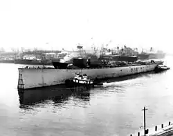 Nach der Kiellegung 1942 wurde der Bau nach mehreren Unterbrechungen 1950 endgültig gestoppt. Pläne, das zu drei Vierteln fertige Schiff nach einem neuen Entwurf mit Raketenbewaffnung fertigzustellen, zerschlugen sich in den folgenden Jahren ebenfalls. 1958 wurde schon installiertes Equipment aus dem Rumpf entnommen, dieser dann verkauft und schließlich abgebrochen.